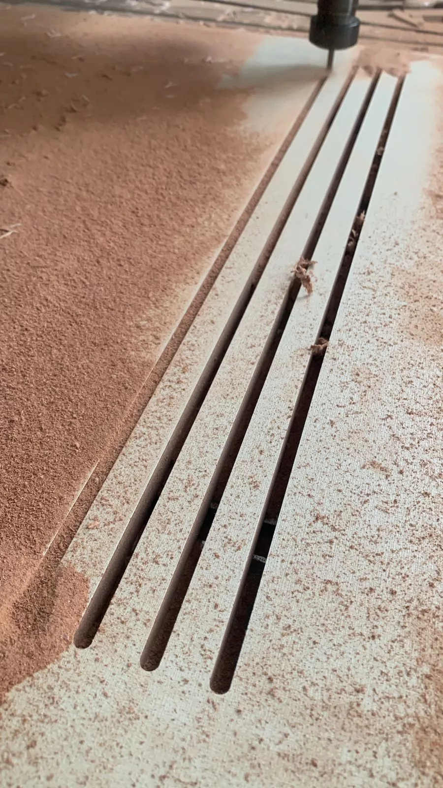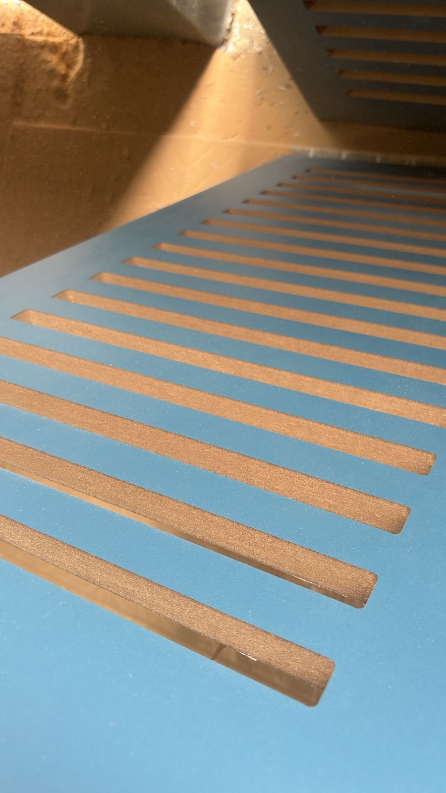 Policarbonato (Lexan) 3 e 5 mm de espessura, com as bordas pintadas de preto fosco para melhor acabamento.