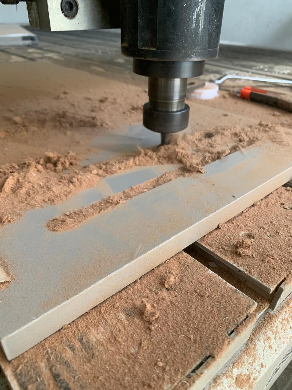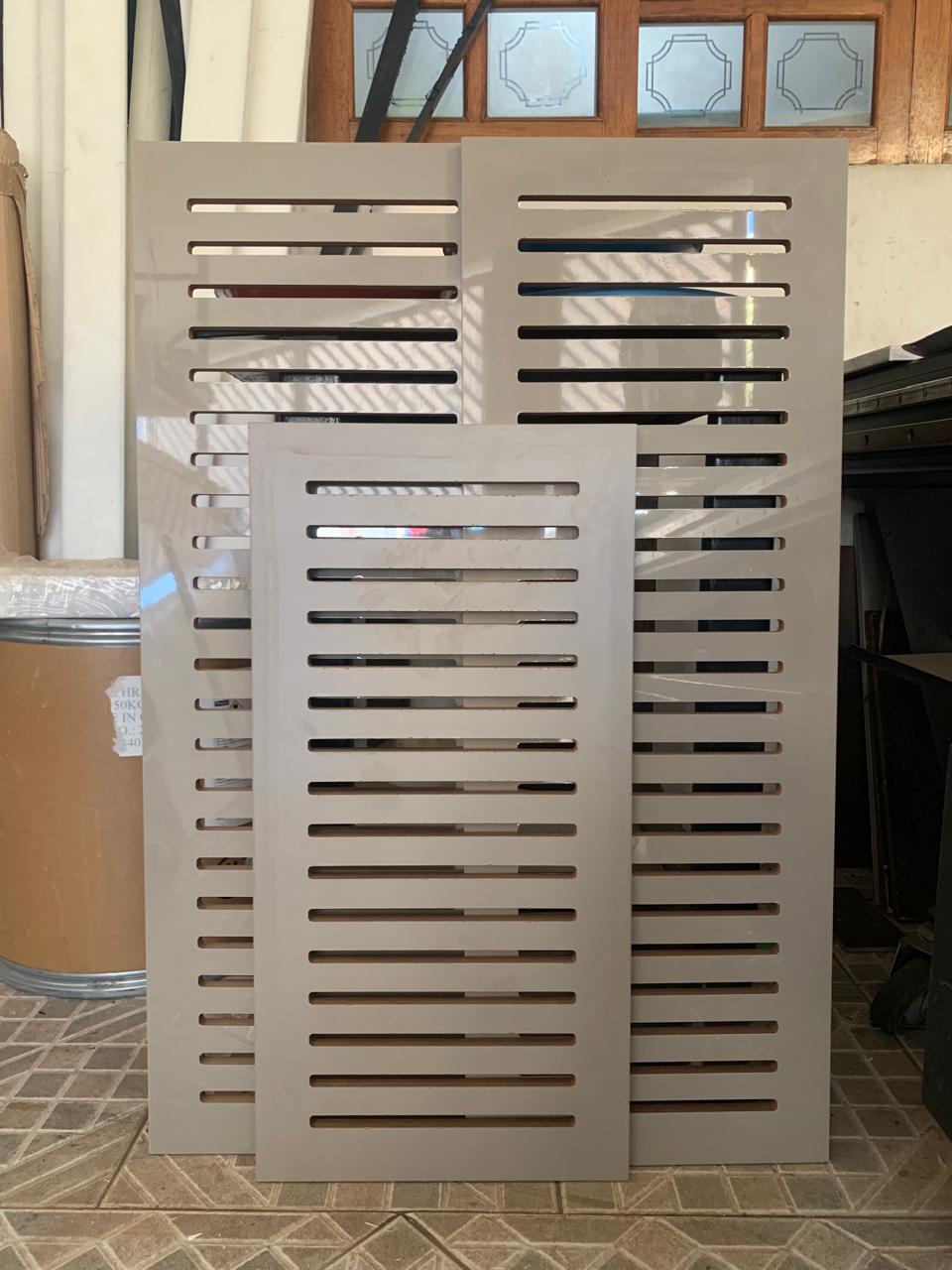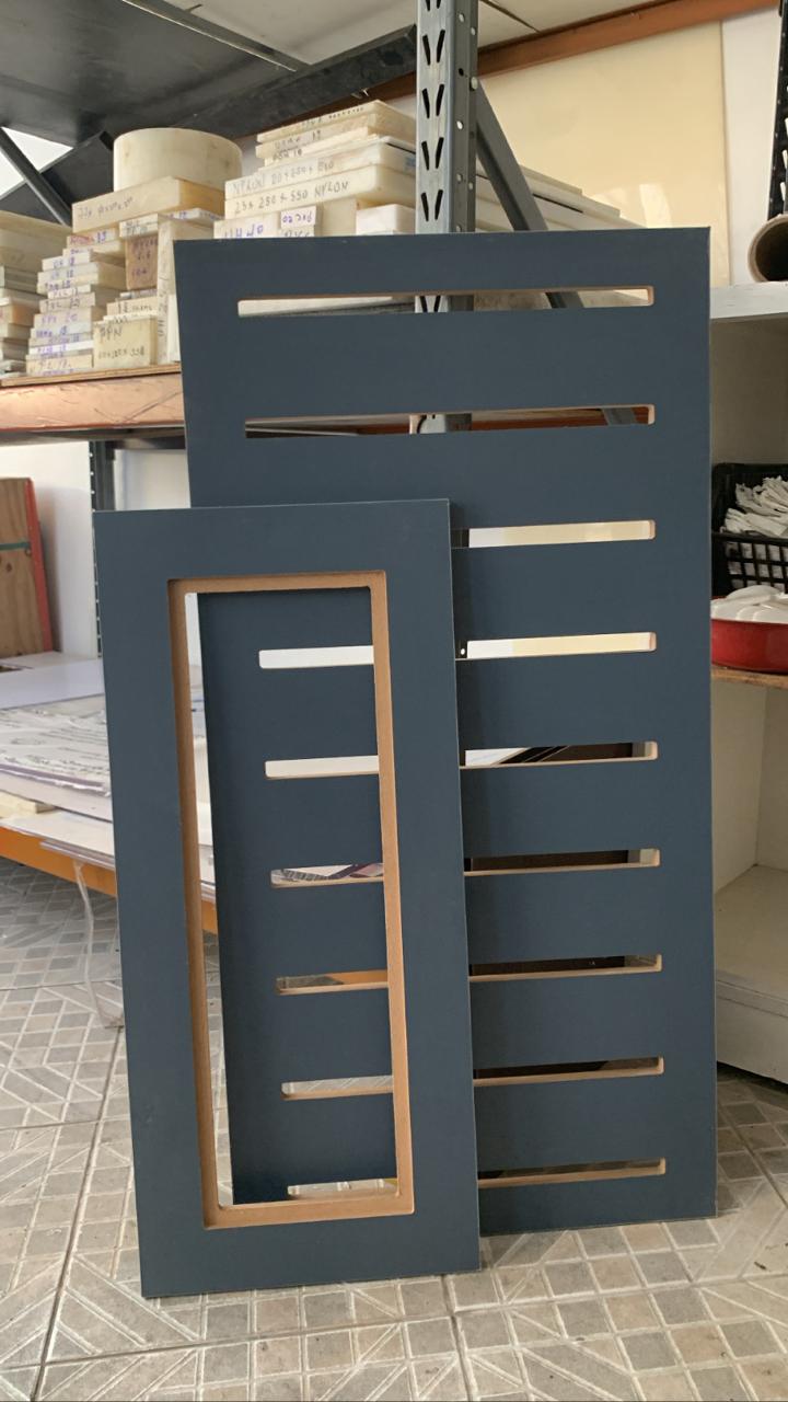 Policarbonato (Lexan) 3 e 5 mm de espessura, com as bordas pintadas de preto fosco para melhor acabamento.